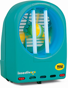 MO-EL zamka za insekte sa ventilatorom i dve UV-A cevi (2x11W), privlači i pomoću ventilatora usisava i skuplja insekte u ugrađeni rezervoar u kome se nalazi i specijalna UV-C fluo cev. Ona vrši dezinfekciju rezervoara od bakterija koje nastaju prilikom raspada insekata i tako sprečava razvijanje raznih bolesti, naročito disajnih organa.
